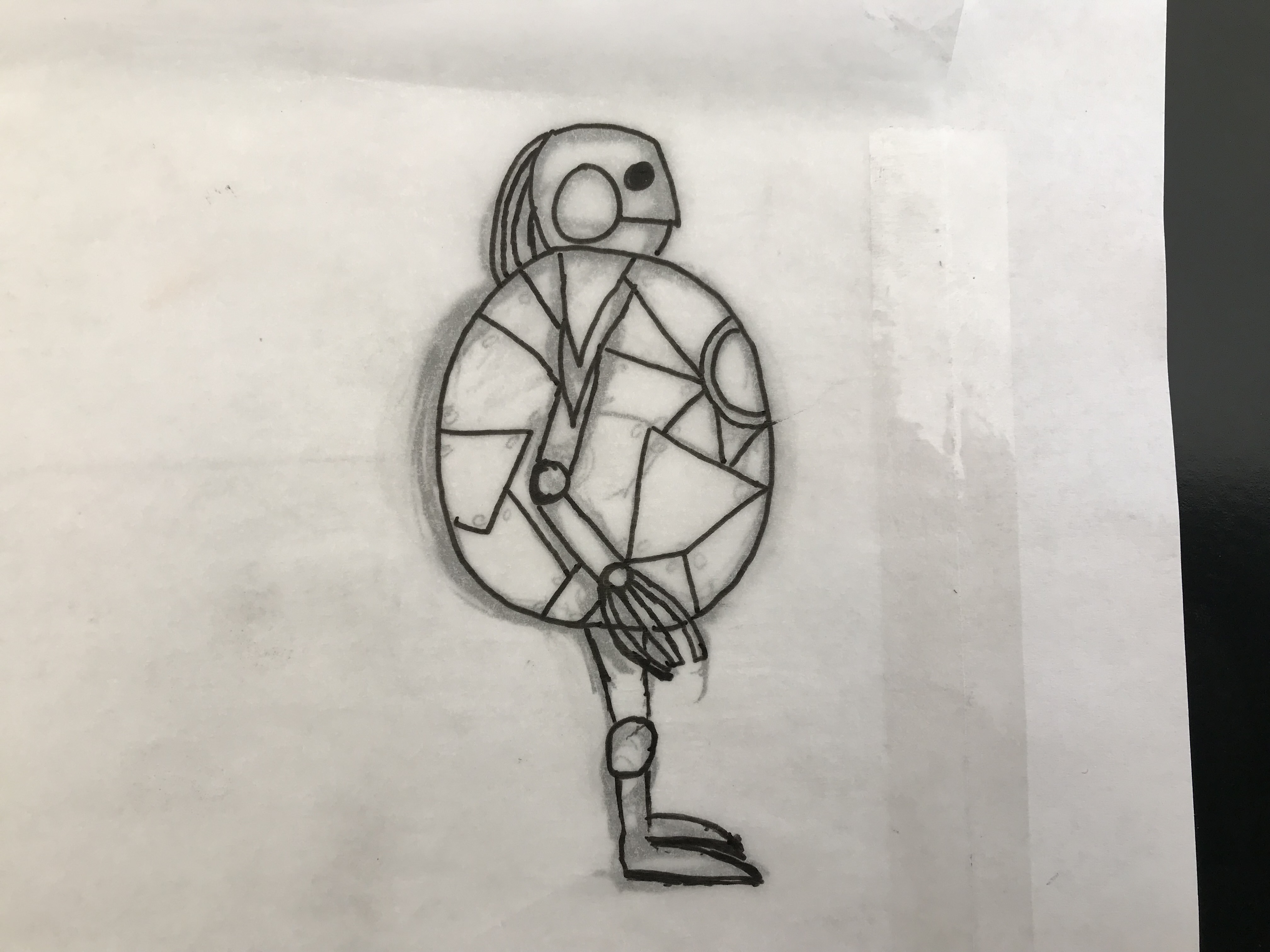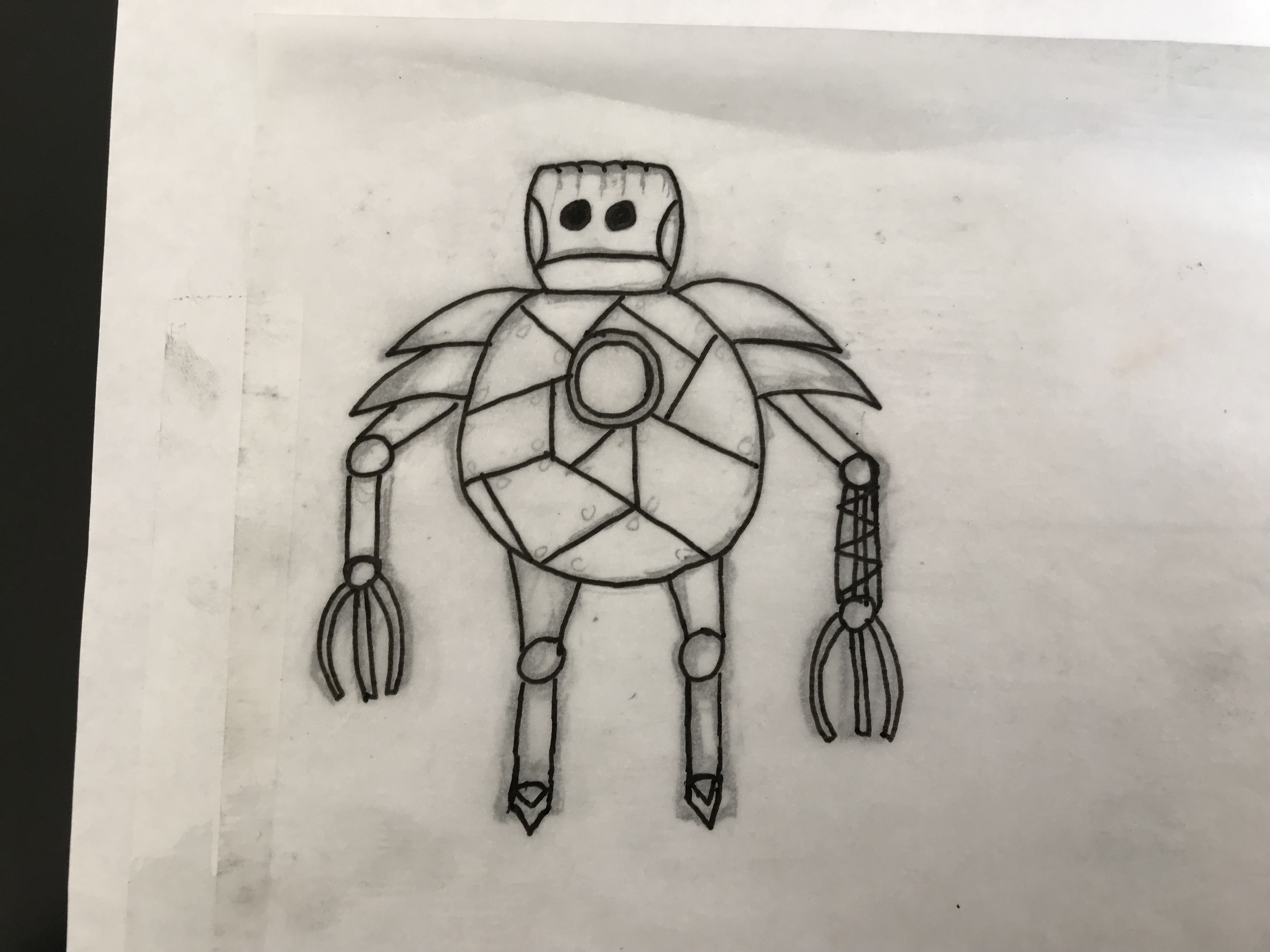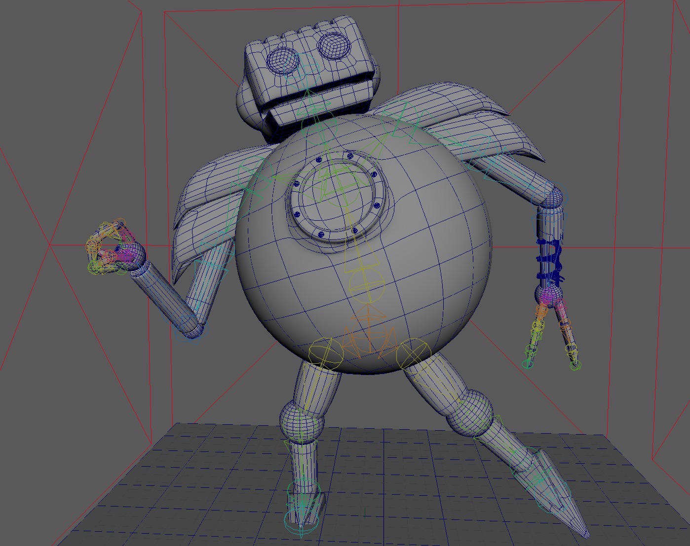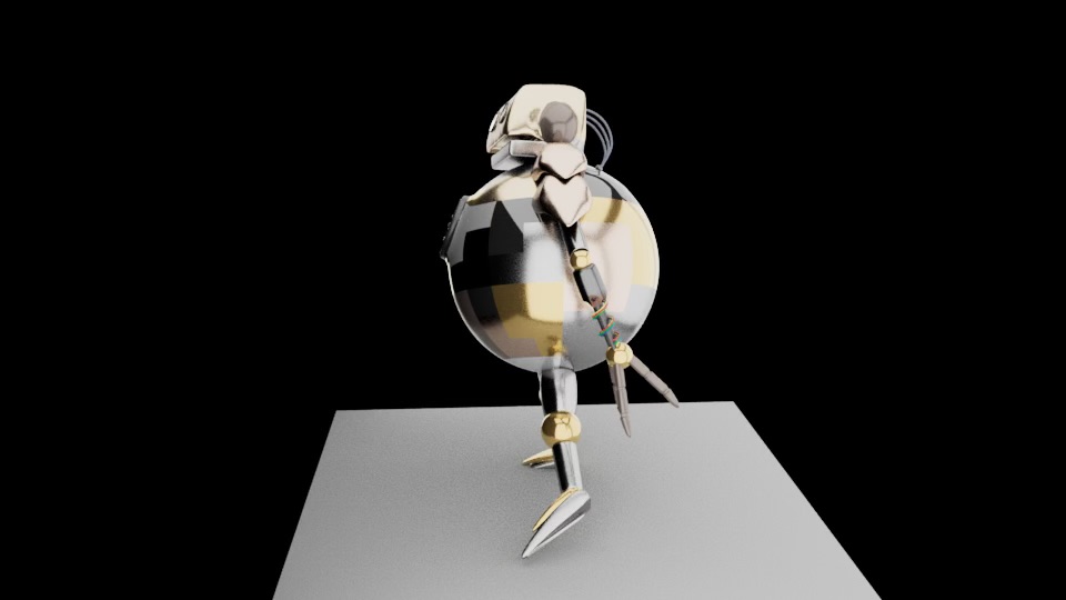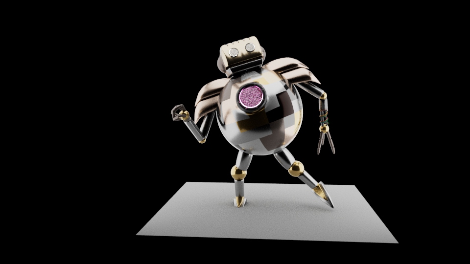 This is a robot that I modeled, UV mapped, textured, and rigged in Maya. The robot was an original design by me. The goal was for it to look worn and pieced together.
